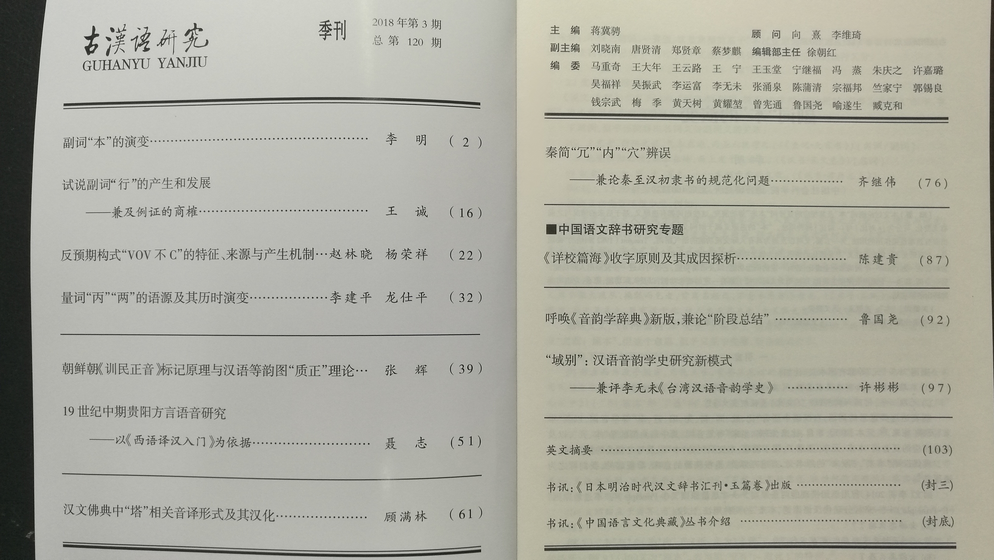 《古汉语研究》2018年第3期(总第120期)