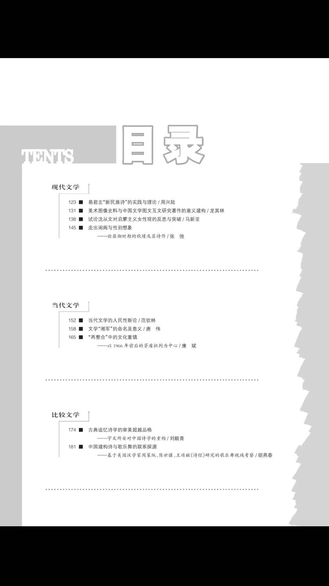 《中国文学研究》2019-2目录