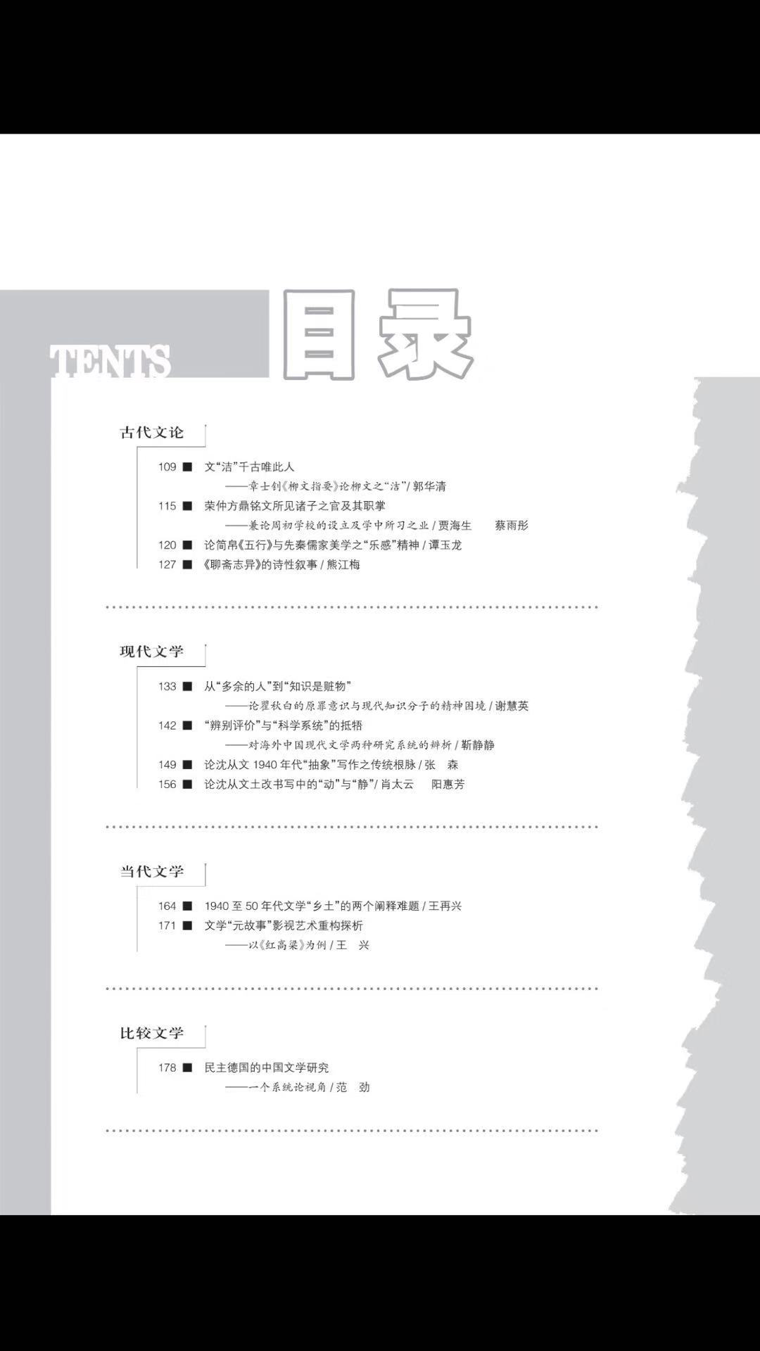 《中国文学研究》2019-1目录