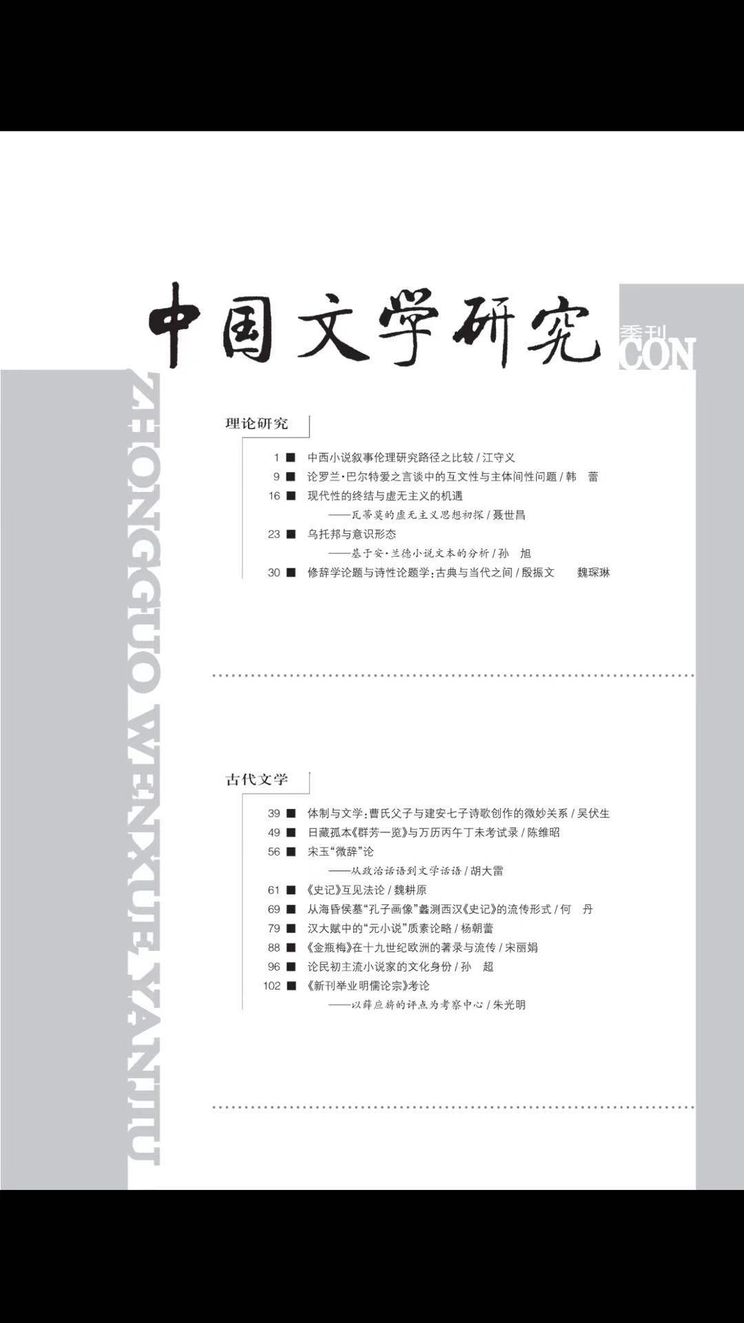 《中国文学研究》2019-3目录