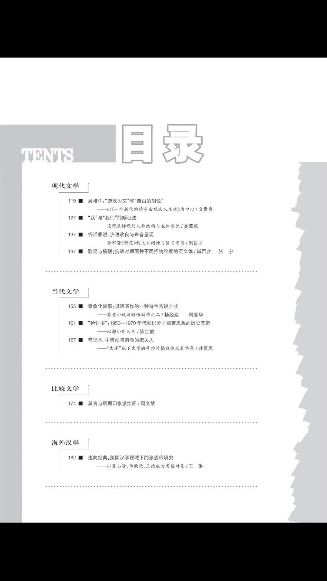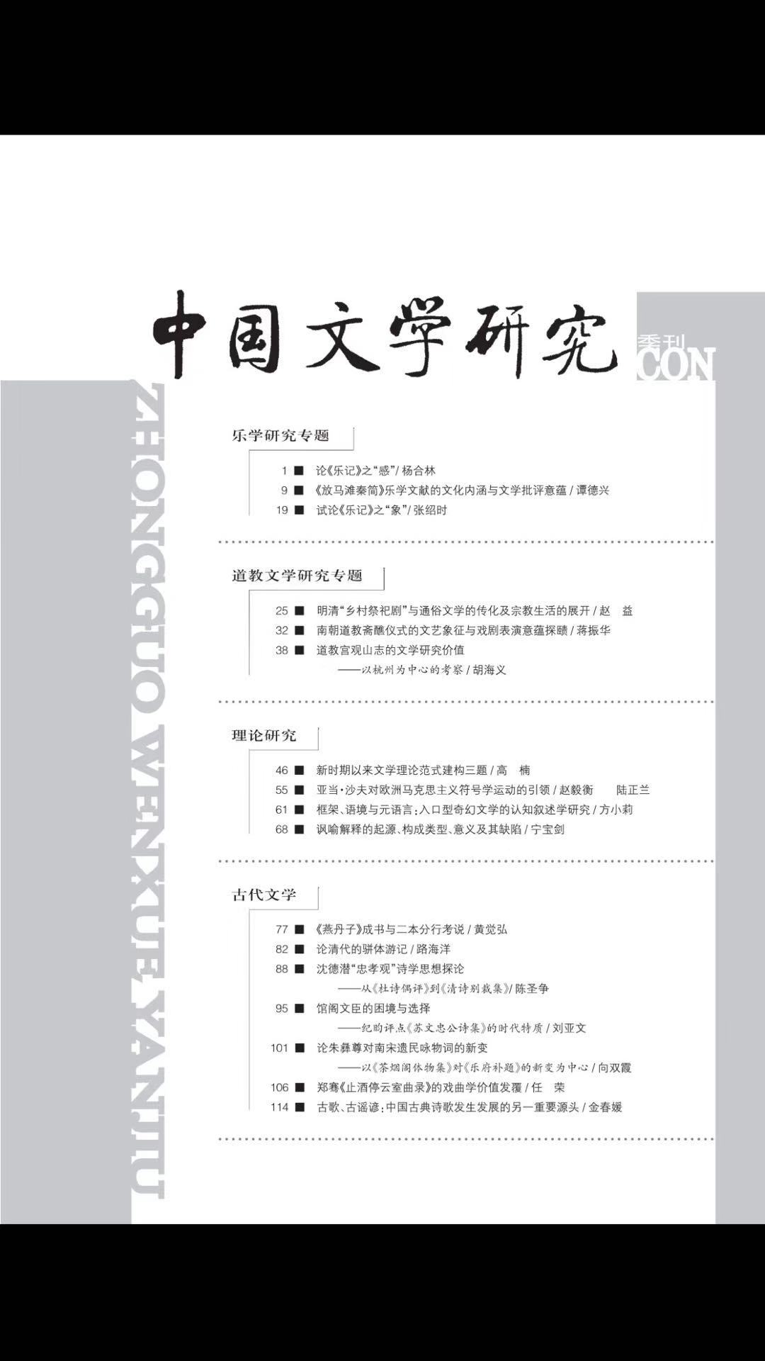 《中国文学研究》2019-3目录