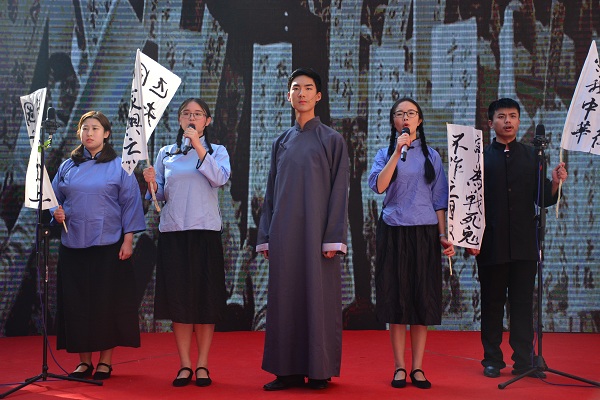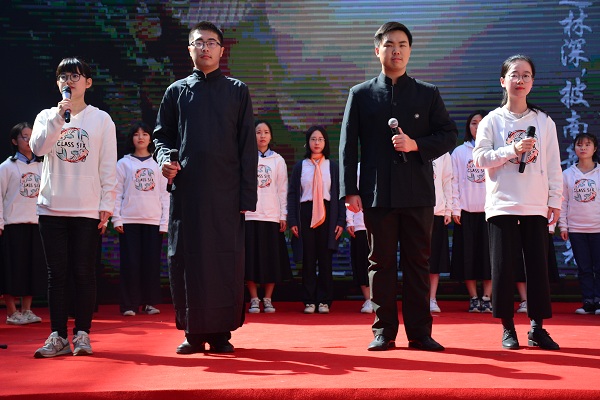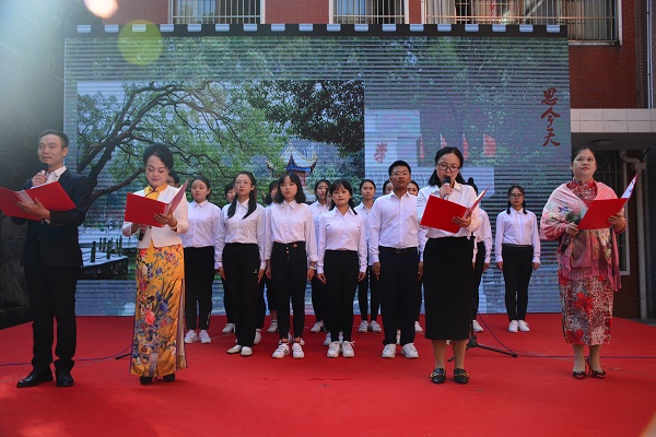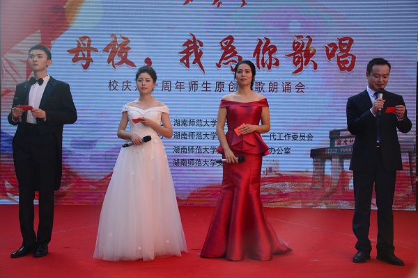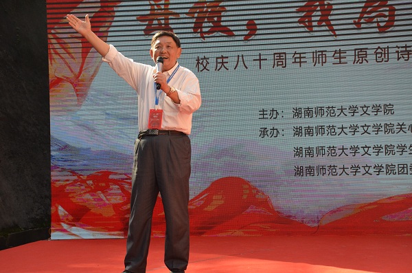回顾学校历史、回忆在校生活是此次诗歌朗诵会的主题。朗诵会以汉韵学社的汉服团扇舞开场,为观者带来美的享受。《八十芳华赋》紧随而至,以情景剧配合朗诵的形式再现了湖南师大由创建到辗转变迁的伟大历程。“人生的瞬间千千万”,但老师与学子间的脉脉情深是校友们脑海中常常播放的影像。《老师,请您再为我们上课》的朗诵者们对在校读书岁月的思念之情溢于言表,也唤起了在场校友们的共情。《樟园小雅》、《诗意年华》以樟园为灵感,展现文院人才华横溢、力求真知的精神风貌。