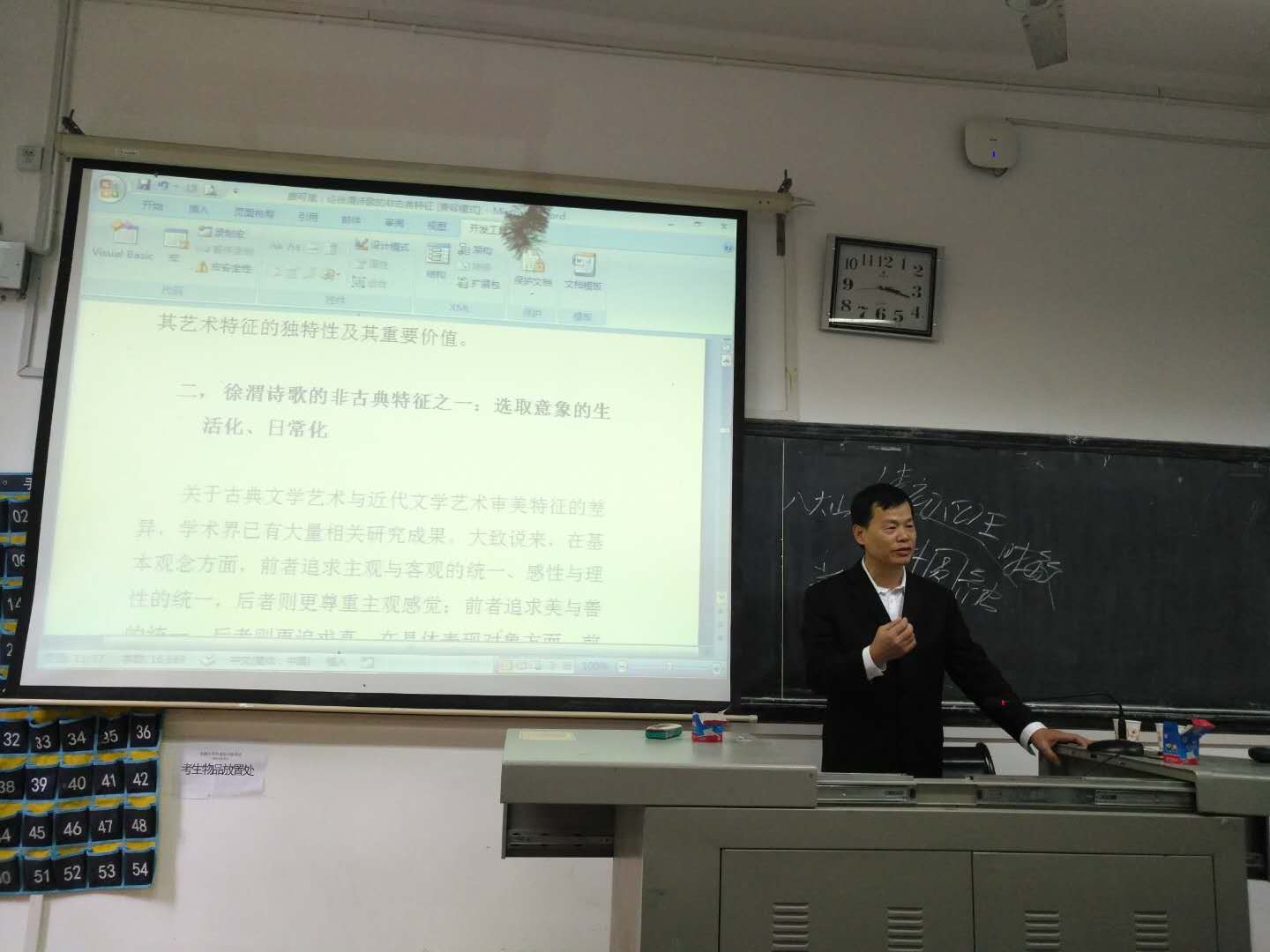 (通讯员 姚湘娟)10月13日下午3时,北京大学教授、博士生导师、中国古文献研究中心主任廖可斌,于bet36365路检测中心314教研室开展了一场以“论徐渭诗歌的非古典特征”为题的讲座。该次讲座是bet36365路检测中心80周年校庆系列学术活动的重要组成部分,是bet36365路检测中心“智慧之光”学术名师系列讲座之一,由bet36365路检测中心蒋振华教授担任主持,古代文学专业的研究生与部分本科生参与聆听了讲座。