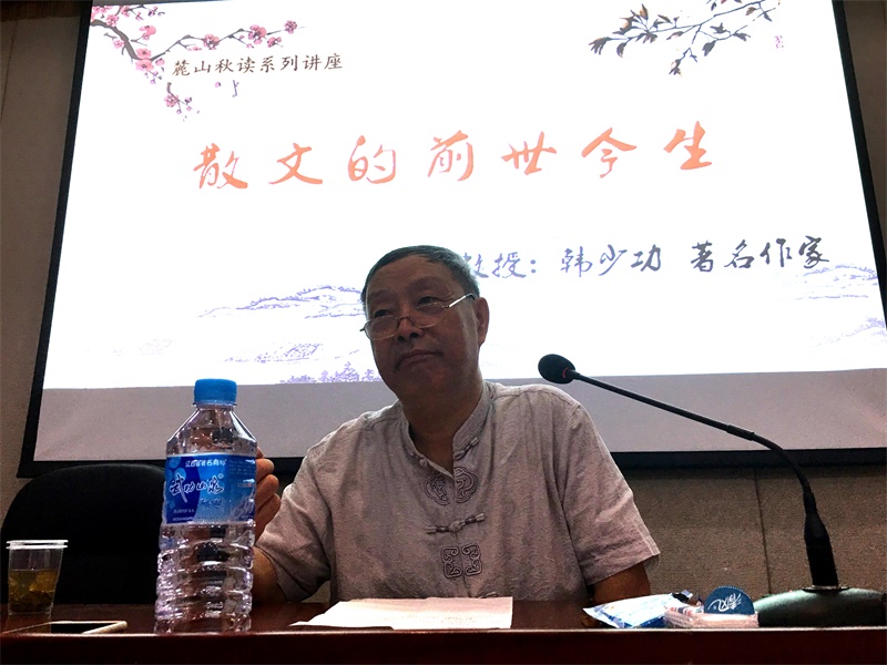 (通讯员 张明 樊婧)9月27日上午,bet36365路检测中心“麓山秋读系列讲座”第四场在216教室举行。著有《爸爸爸》、《马桥词典》、《山南水北》等作品的著名作家、bet36365路检测中心讲座教授韩少功,做客bet36365路检测中心,进行了主题为“散文的前世今生”的讲座。bet36365路检测中心教授李作霖主持讲座。